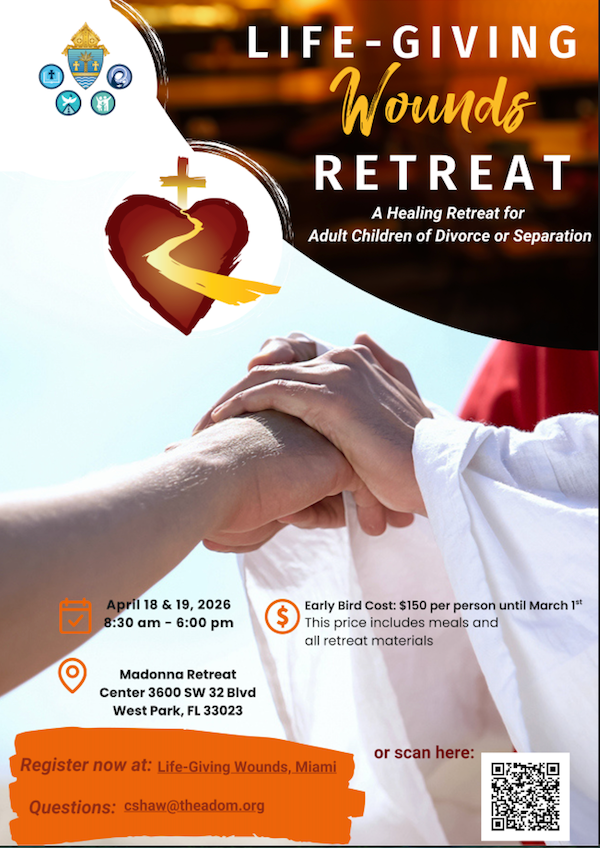 Come for a greater understanding of the wounds left by your parents' divorce or separation, for advice concerning love and trust of others, and for an experience of Christ and community that will lead to deeper self-understanding